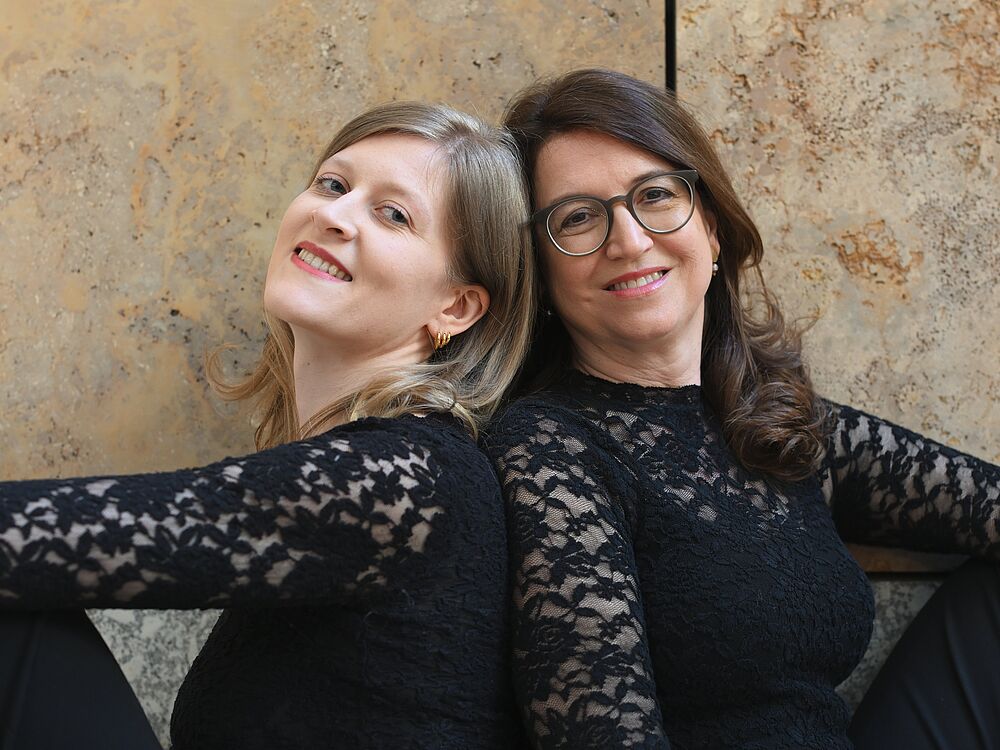 Das Klavierduo von Corinna Liebler und Ella Rosenberg spielt an diesem Abend die Fantasie f-Moll von Schubert, die Fantasiestücke für Klarinette und Klavier (bearbeitet für Klavier zu vier Händen) von Schumann, die Fantasie f-Moll von Mozart und mitreißende Rhythmen und Poulenc und Ligeti.