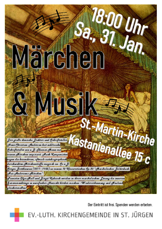 Der große dänische Dichter und Schriftsteller Hans-Christian Andersen hat zahlreiche Schriftsteller wie z.B. Thomas Mann mit seinen Märchen inspiriert. Auch Komponisten zogen die besonderen, oftmals autobiographisch durchwebten Märchenstoffe magisch an. So z.B. Sergei Bortkiewicz (1877 - 1952) in seinen 12 Klavierstücken Op.30 "Musikalisches Bilderbuch. Aus Andersens Märchen".