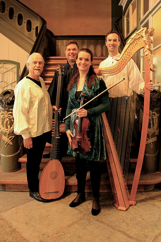 Das Ensemble "Gardens of Delight" (Tim Stekkelis/Gesang, Cornelia Bach/Violine, Ulf Dressler/Laute, Daniell Fourie/Harfe) präsentiert in seinem Programm Werke von Purcell, Händel, Dowland und Telemann. In allen Stücken geht es um die Sehnsucht nach und Erfüllung von Liebe.